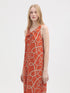 Long dress in viscose crepe fabric with an Anchor Ropes print. V-neckline with a knot and slit. Sleeveless. Side slits at the hem.