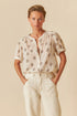 We love square-cut shirts. This one has a box collar and short puffed sleeves, plus a fluid silhouette printed in cotton voile for the hottest days.